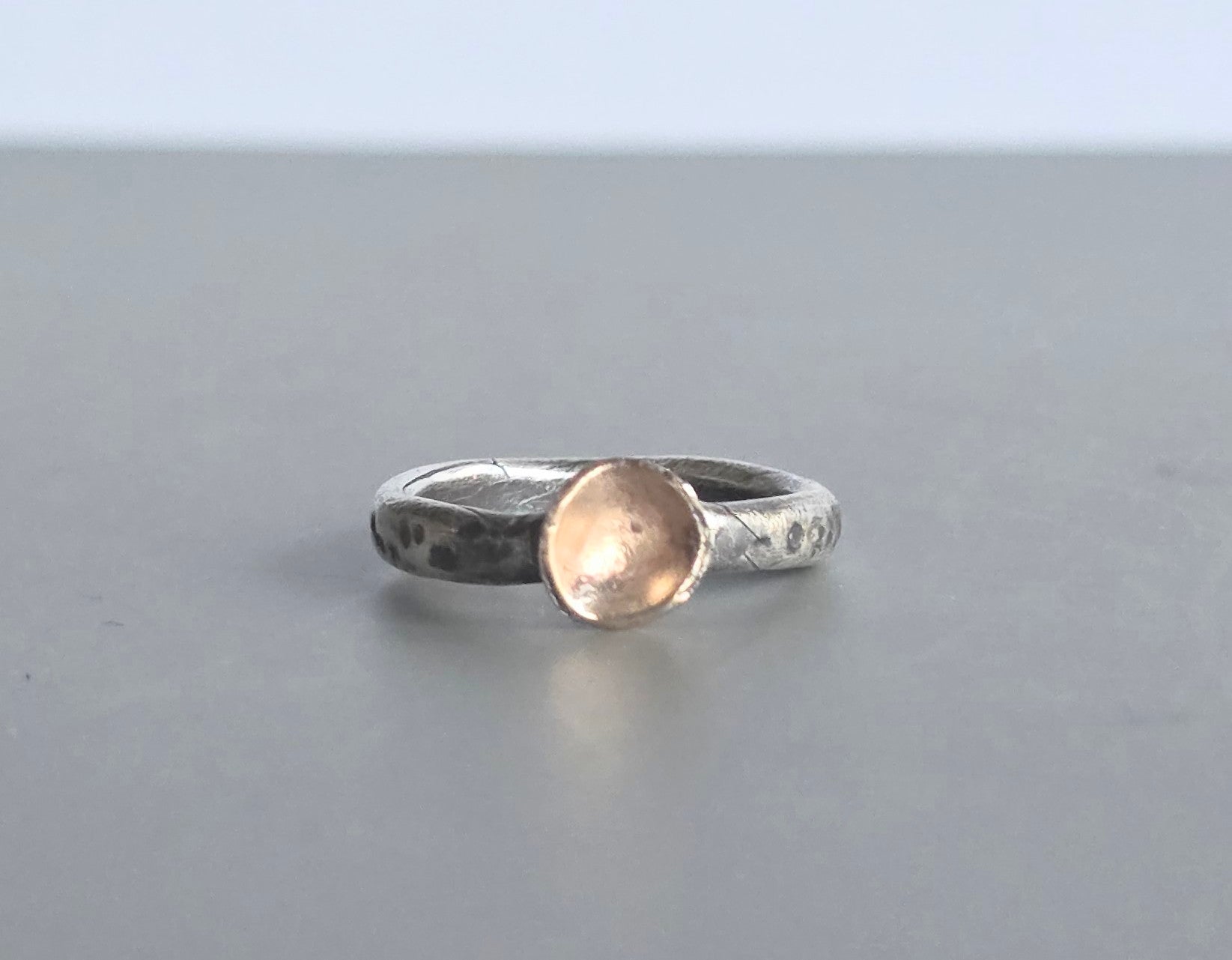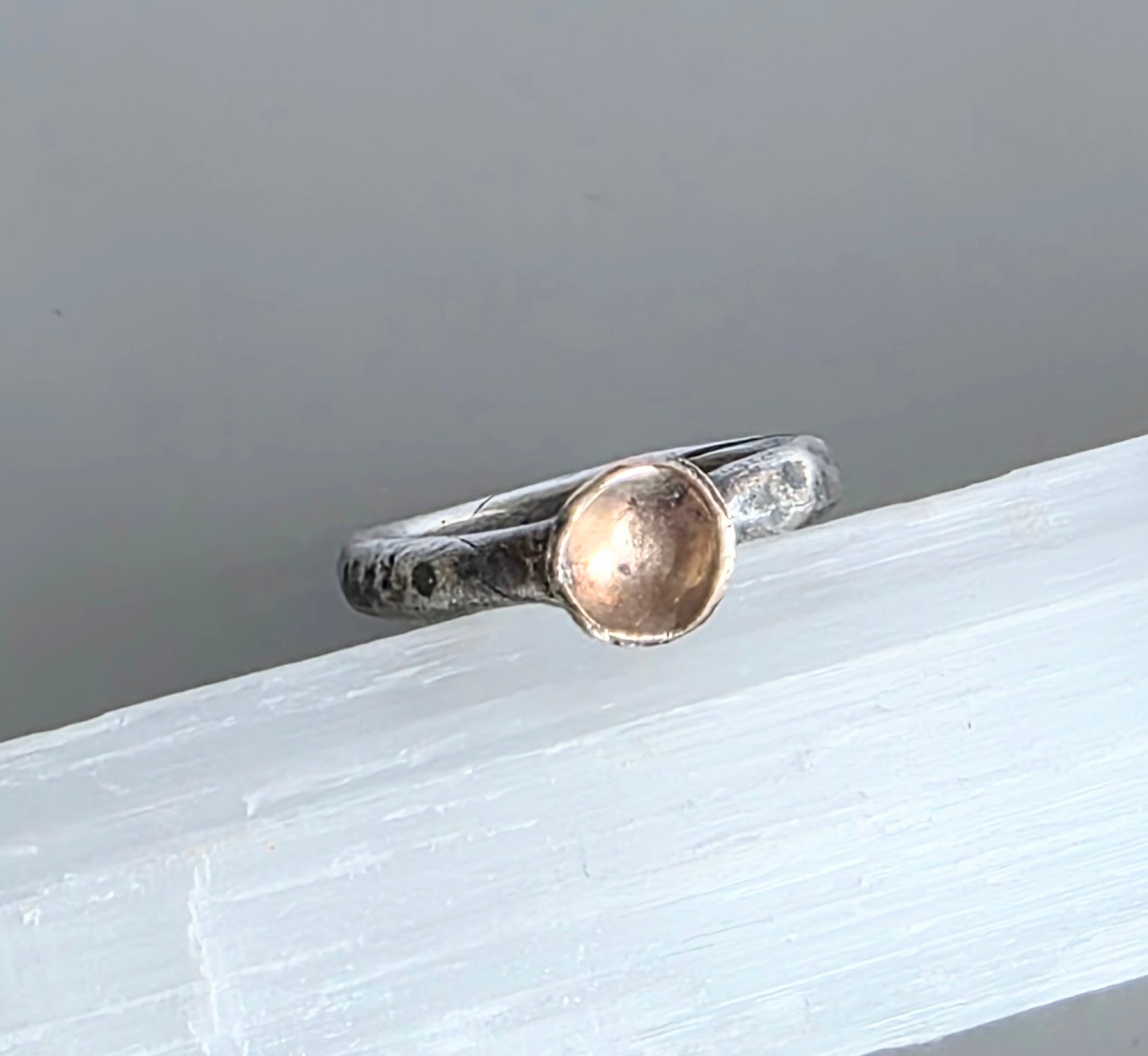 I know this ring looks simple but for some reason it took me forever to make! I formed the sterling ring and made the bronze cup and soldered them together- that was the part that took so long- they didn't want to plat together at first but then I spoke to them kindly and they cooperated and they are best friends now! Lots of texture added too!
